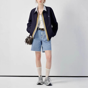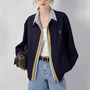 女士短外套25年秋装款设计感美式假三件小个子夹克上衣