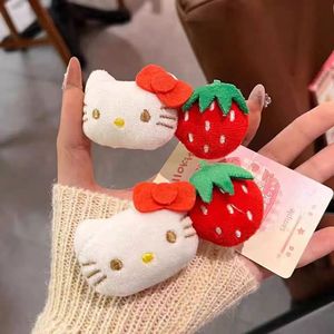 可爱kt草莓发夹高级感毛绒BB夹侧边刘海夹少女心发卡百搭韩版发饰