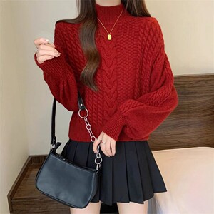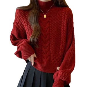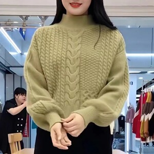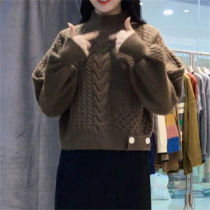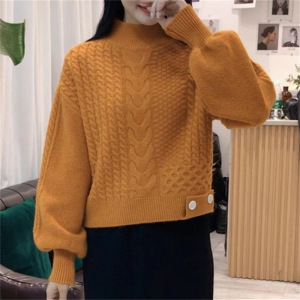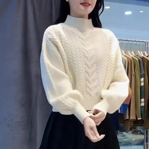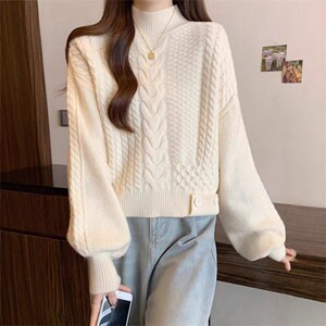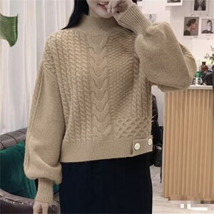 时尚气质半高领慵懒风灯笼袖毛衣女秋冬温柔气质减龄显瘦针织上衣