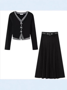 上衣+灰色半身裙+腰带--三件套
