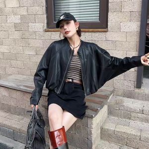 秋冬新款蝙蝠侠宽松休闲版型仿皮衣女装时尚显瘦百搭长袖pu皮上衣
