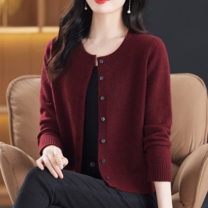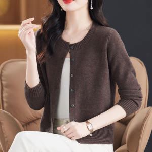 圆领针织开衫女2025秋季新款时尚减龄外搭宽松显瘦短款毛衣外套