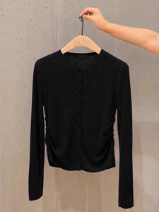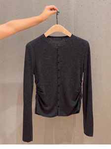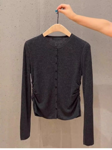 韩系设计感小众别致深灰色上衣女早秋高级感长袖内搭打底针织开衫
