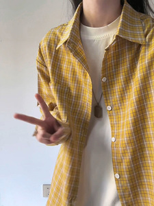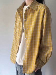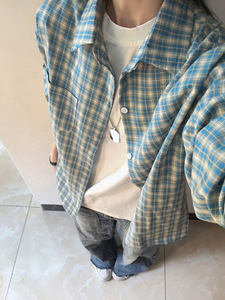孔雀蓝色格子衬衫男女秋季高级感慵懒风格纹衬衣美式休闲情侣外套