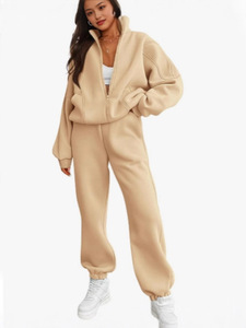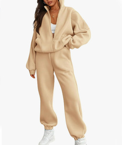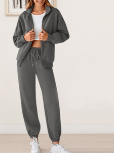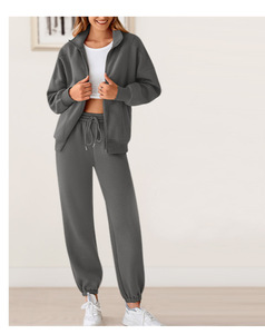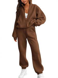 2025跨境欧美女装亚马逊两件套卫衣抓绒休闲拉链宽松时尚套装女