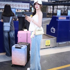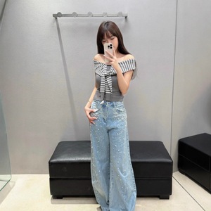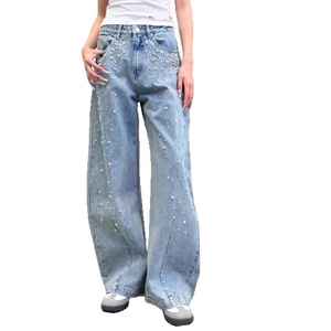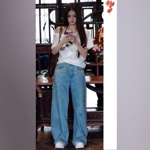 25秋冬AN新款️徐璐同款闪钻珍珠做旧休闲百搭牛仔弯刀裤长裤中腰