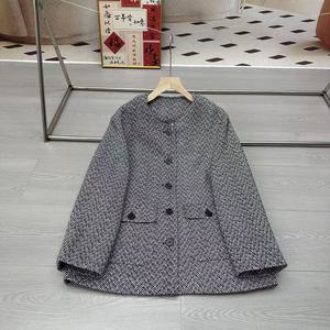 即墨厂家09160125女装2025秋新款混纺花呢人字格短外套