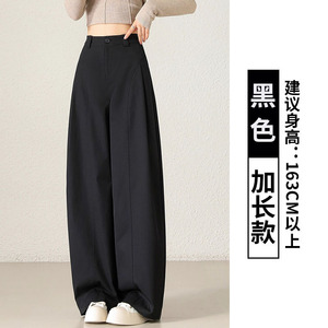 复古卡其色休闲裤女2025年秋季新款小个子高腰宽松显瘦阔腿直筒裤