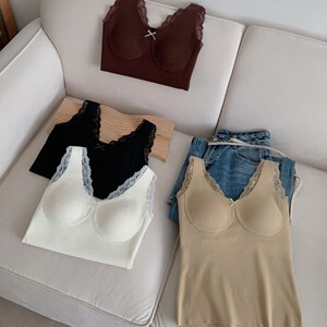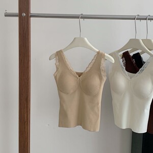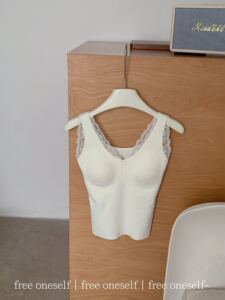 秋冬蕾丝保暖内搭羊毛双面磨毛无痕加绒加厚百搭带胸垫保暖背心女