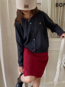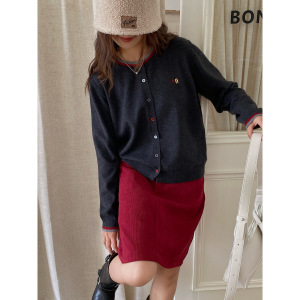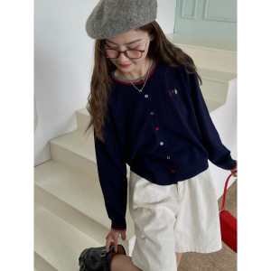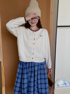 日系秋季甜美减龄撞色圆领针织衫宽松百搭休闲彩扣长袖开衫女ZEZ