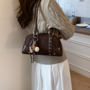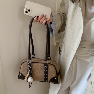 麂皮绒腋下通勤波士顿女包2025新款时尚单肩包大容量高级感手拎包