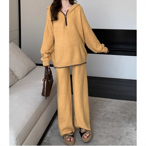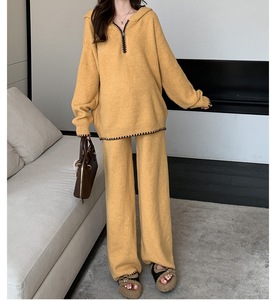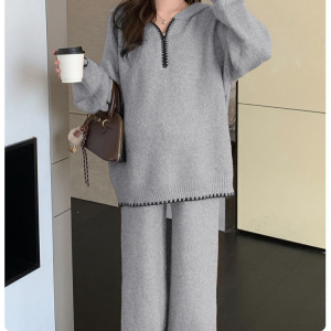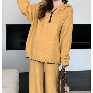 孕妇套装2025秋季新款孕期慵懒风宽松连帽针织上衣时尚毛衣两件套