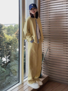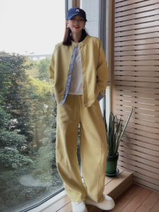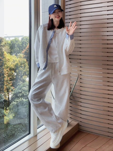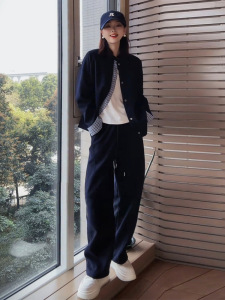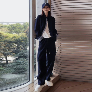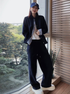 韩系休闲时尚套装女春秋格子拼接设计感小众卫衣外套阔腿裤两件套