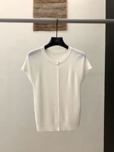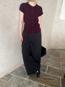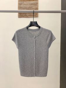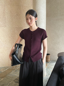 FONE简禾单排扣羊毛针织衫女2025秋季休闲百搭短袖打底上衣88185