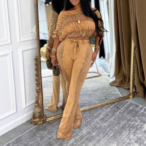 AL334亚马逊跨境欧美拼接色修身弹力上衣休闲长裤套装两件套春秋