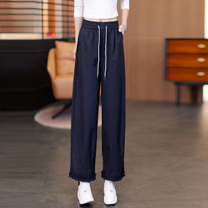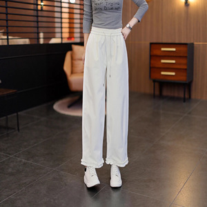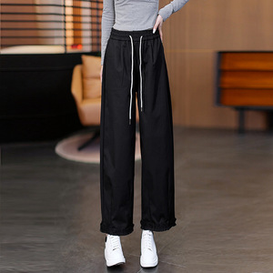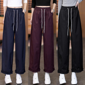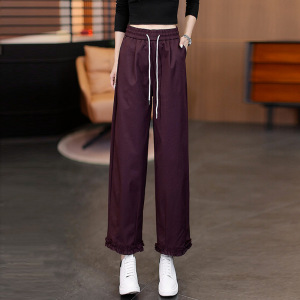2025年春秋季新款高腰显瘦阔腿休闲裤女宽松显瘦九分灯笼裤花边裤