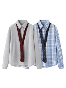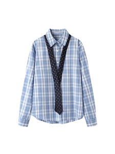 2025年冬季新款女装简约风格子印花领带装饰衬衫长袖上衣 3J4C402