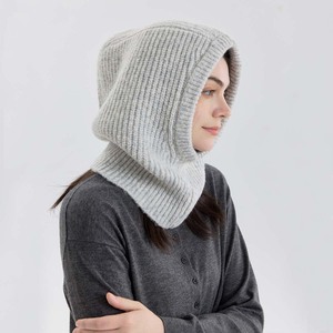 厂家自制纯色针织法帽套头围脖护耳连体帽男女秋冬氛围感通勤穿搭