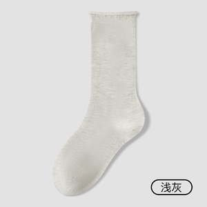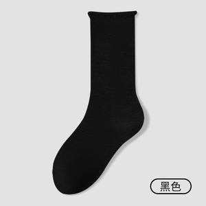 白色堆堆袜子女桑蚕丝羊毛加厚保暖中筒袜弹力无骨亲肤舒适月子袜