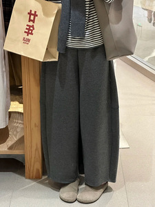 灰色弯刀奶皮裤女秋款小个子糯米镰刀裤休闲大码九分阔腿裤子