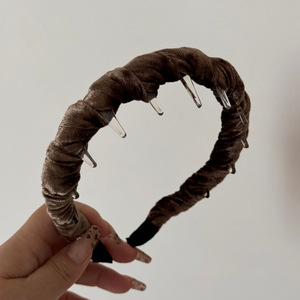 丝绒长齿发箍-咖色