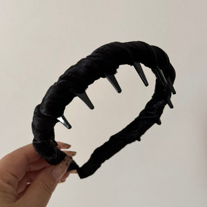 丝绒长齿发箍-黑色