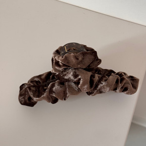 丝绒褶皱抓夹-咖色