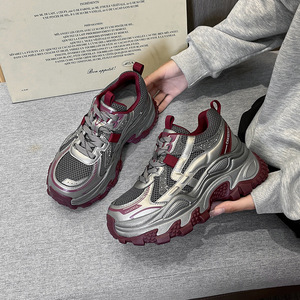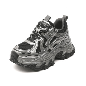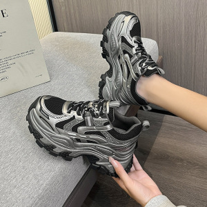 磁能震动按摩鞋真皮厚底老爹鞋女2025秋季新款轻便增高休闲运动鞋
