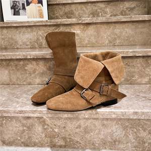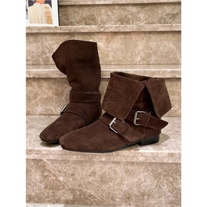 香港磨砂小众辣妹西部牛仔短靴女2025秋冬新款翻领两穿马丁机车靴