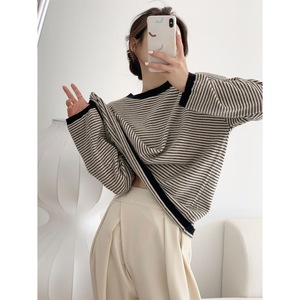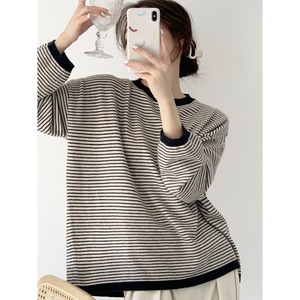 春秋上衣女单穿薄款条纹慵懒风宽松显瘦洋气上档次外穿针织衫女