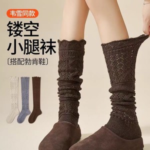 2025袜子女秋冬蓄热保暖堆堆小腿袜miu系芭蕾风浮雕镂空袜子