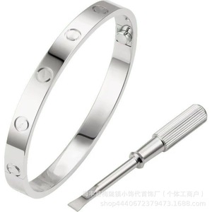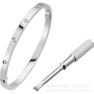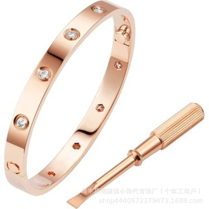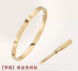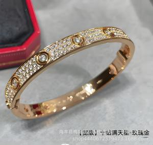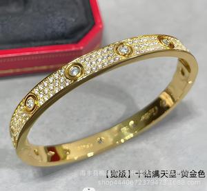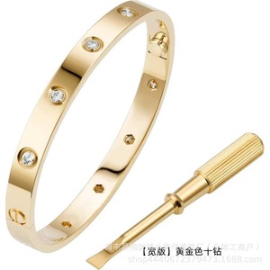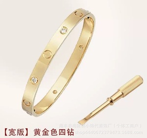 卡家螺丝款四钻十钻满钻手镯女款情侣手环宽版V金不掉色手饰批发