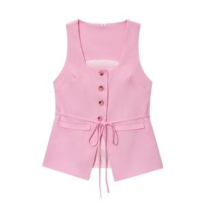 ZR外贸批发 欧美风女装 排扣式设计时尚气质百搭系绳马甲休闲长裤
