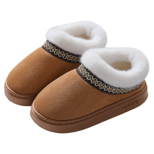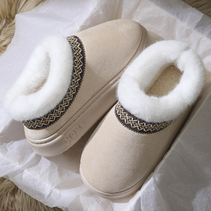 新款秋冬季花边民族风时尚毛口全包跟棉鞋男女情侣款室内外棉拖鞋