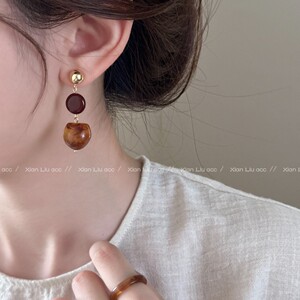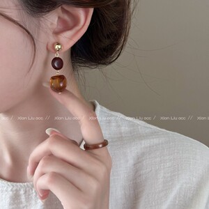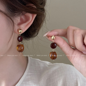 复古美拉德天然石长款流苏耳环女小众设计感耳钉秋冬气质百搭耳饰