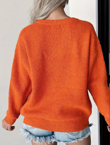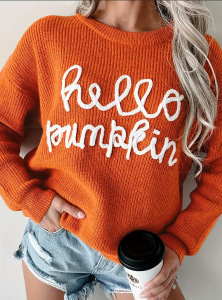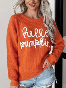 “你好.南瓜” 个性字母刺绣宽松休闲套头毛衣