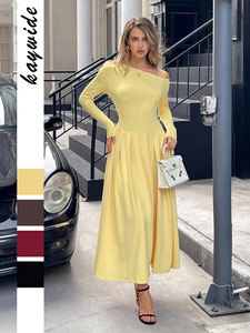 跨境 欧美Y2K高腰长袖长裙子连衣裙女装2025秋冬亚马逊外贸独立站