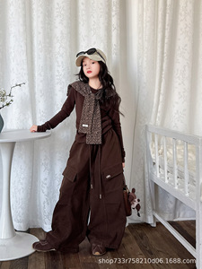 女童工装裤套装春秋装2025新款儿童中大童韩版潮款复古直筒阔腿裤