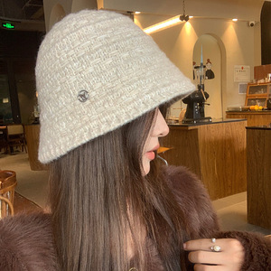 针织渔夫帽女秋冬季韩版百搭水桶帽日系复古大头围显脸小毛线帽子