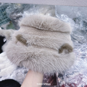 批发韩国2025年秋冬新款仿貂毛耳朵渔夫帽女保暖加厚护耳防寒盆帽
