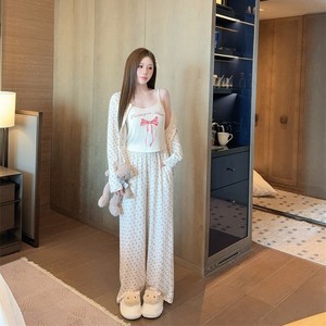 睡衣女春秋高质量提花莫代尔棉碎花蝴蝶长袖长裤吊带胸棉家居服