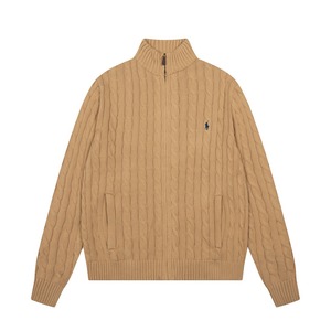 跨境新款拉夫RL经典小标刺绣logo全拉链针织绞花男女同款开衫毛衣