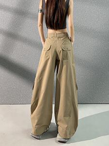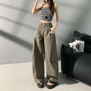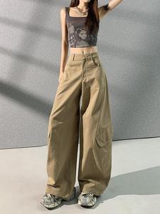 美式咖色复古工装裤女2025新款秋季高腰显瘦宽松阔腿弯刀休闲裤子