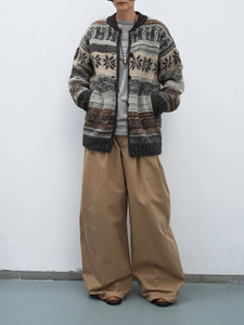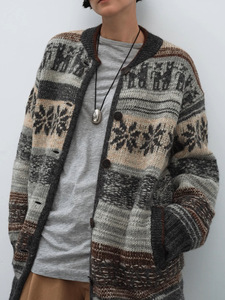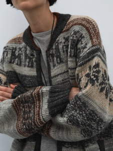 25新品羊驼羊毛 多层图案费尔岛提花开衫毛衣外套