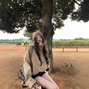 复古双排扣2025英伦风立领短款风衣女装秋冬法式宽松休闲外套上衣