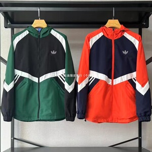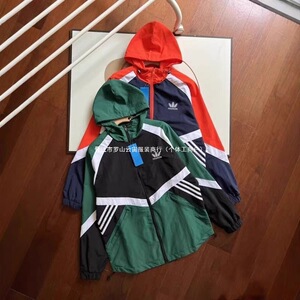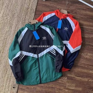 有标春秋新款三条杠拼色户外防风透气连帽夹克外套男女风衣外套潮