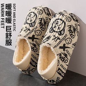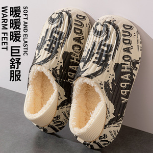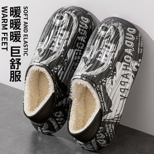 全包跟防水棉拖鞋男秋冬季外穿踩屎感厚底防滑加绒保暖毛绒棉鞋女