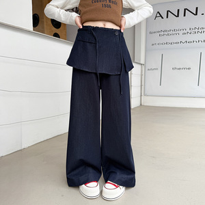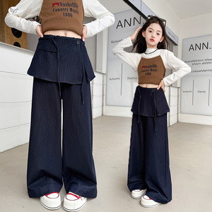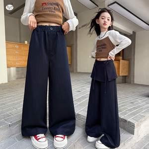 女童裤子2025年秋季新款中大童净色屁帘阔腿裤高腰直筒裤拖地长裤