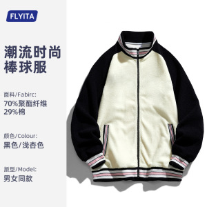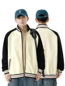 秋冬棒球服定制2025新款时尚百搭立领加绒拉链卫衣男拼色开衫外套