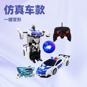 跨境一键遥控变形赛车兰博模型RC儿童电动变形警车机器人赛车玩具